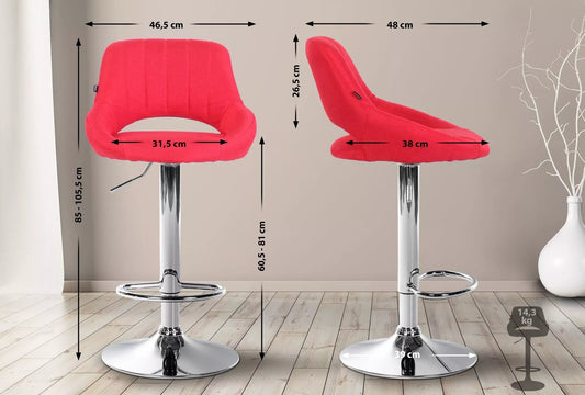 In And OutdoorMatch Barhocker Dannie Red Chrome – Stoff – 60–81 cm Sitzhöhe – Ergonomische Barstühle – Höhenverstellbar – 1er-Set – Mit Rückenlehne – Für Küche und Bar