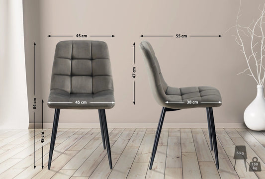 In And OutdoorMatch Esszimmerstühle Rhianna – Grau – 2er-Set – Stoff – Hochwertige Polsterung – Luxuriöser Esszimmerstuhl – Stilvolles Erscheinungsbild