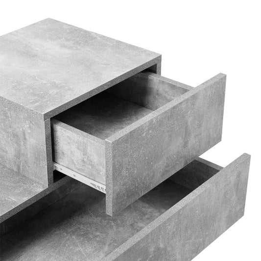 In And OutdoorMatch Nachttisch Jameson - Rechts - Mit Schubladen - 38x70x35 - Betonoptik - Spanplatte - Stilvolles Erscheinungsbild