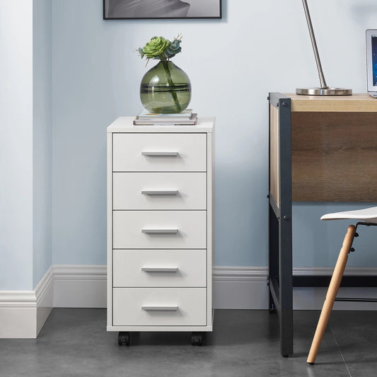 In And OutdoorMatch Büroschrank Rashad – Kommode – Auf Rollen – 63 x 33 x 38 cm – Weiß – Spanplatte – Modernes Design