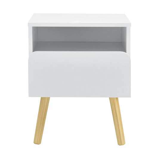 In And OutdoorMatch Nachttisch Sallie – Mit Schublade – 50 x 40 x 34 cm – Weiß und Holz – Spanplatte und Kiefer – Modernes Design