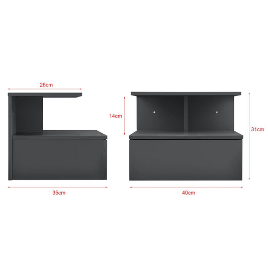 In And OutdoorMatch schwebender Nachttisch Ignatius – 30 x 40 x 29 cm – mit 2 Schubladen – Dunkelgrau – Spanplatte – stilvolles Aussehen