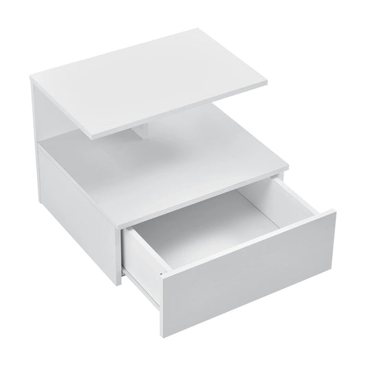 In And OutdoorMatch Schwebender Nachttisch Millie – Mit Schublade – 40 x 35 x 31 cm – Weiß – Spanplatte – Stilvolles Aussehen