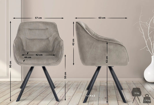 In And OutdoorMatch Esszimmerstuhl Alejo – Grau – Mit Armlehnen – Samt – Hochwertige Polsterung – Bequemer und luxuriöser Esszimmerstuhl – Vintage-Look