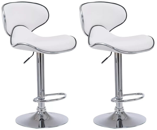 In And OutdoorMatch Bar Stool Jana Bernadine - White - Chrome - Modern Design - Backrest - Footrest - For Kitchen and Bar - Upholstered Seat - Imitation Leather