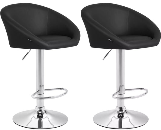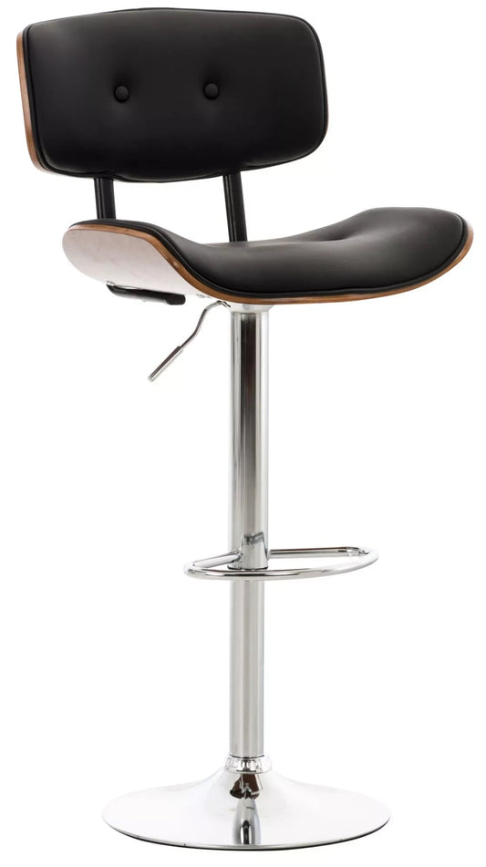 In And OutdoorMatch Bar Stool Tania Nyah - Black - Chrome - Modern Design - Backrest - Footrest - For Kitchen and Bar - Upholstered Seat - Imitation Leather