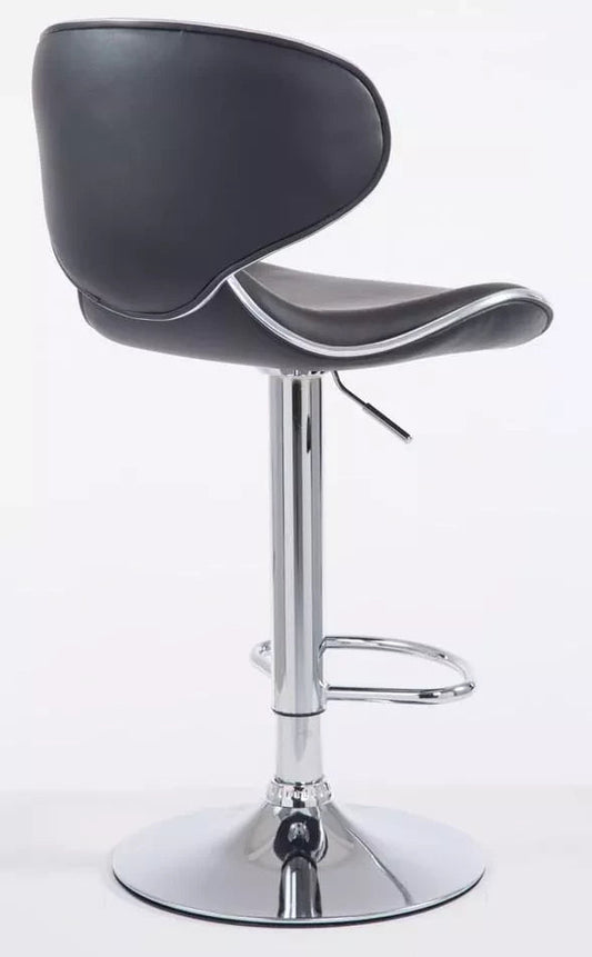 In And OutdoorMatch Bar Stool Tiago Jayne - Black - Chrome - Modern Design - Backrest - Footrest - For Kitchen and Bar - Upholstered Seat - Imitation Leather