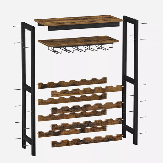 In And OutdoorMatch Wine Rack Clarissa - 24 Bottle Wine Rack - Wine Cabinet - Freestanding - Bottle Rack with Glass Holders - for Kitchen - Bar - Dining Room - Vintage Brown/Black