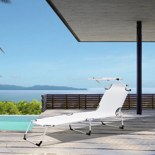 In And OutdoorMatch Lounger Kianna - With Sun Canopy - 187x53x27 cm - White - Steel and PVC - Luxury Look