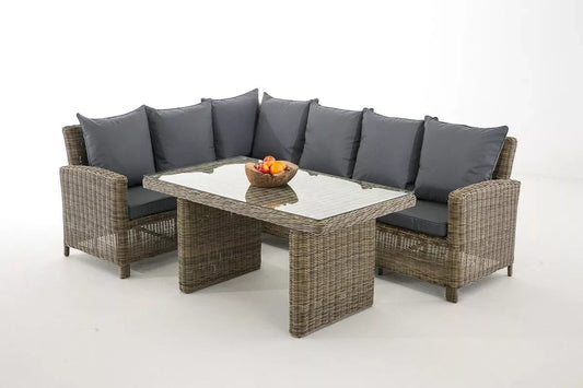 In And OutdoorMatch Garden set Tyrese - Glass table rattan wicker - Garden furniture - Dining table - Lounge set - Outdoor table - Coffee table - Gray/white - 6 persons