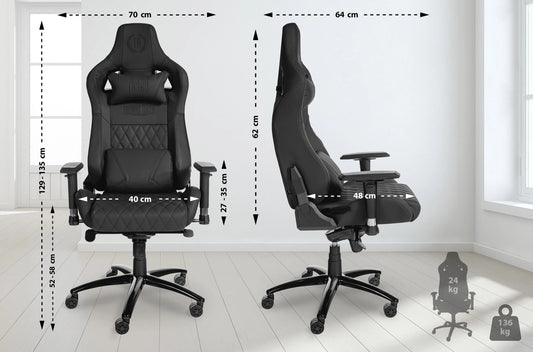 In And OutdoorMatch Bürostuhl Reynard – Schwarz – Echtes Leder – Hochwertige Polsterung – Bequem gepolstert – Luxuriöse Optik