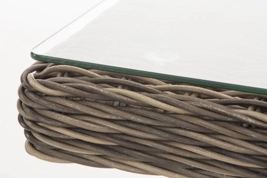 In And OutdoorMatch Gartentisch Cristal – Glastisch aus Rattangeflecht – Gartenmöbel – Esstisch – Tisch im Freien – Couchtisch – 180 cm