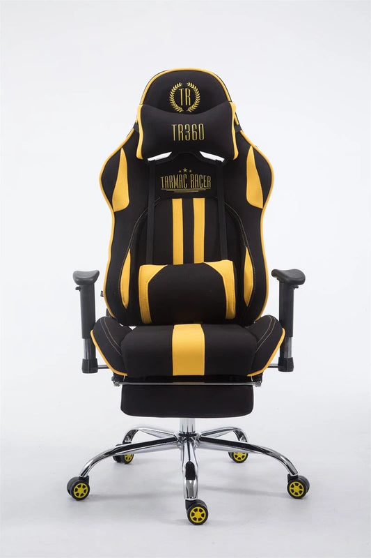 In And OutdoorMatch Boris Bürostuhl - Schwarz und Gelb - Stoff - Fußstütze - Hochwertige Polsterung - Exklusiver Bürostuhl - Luxuriöses Erscheinungsbild