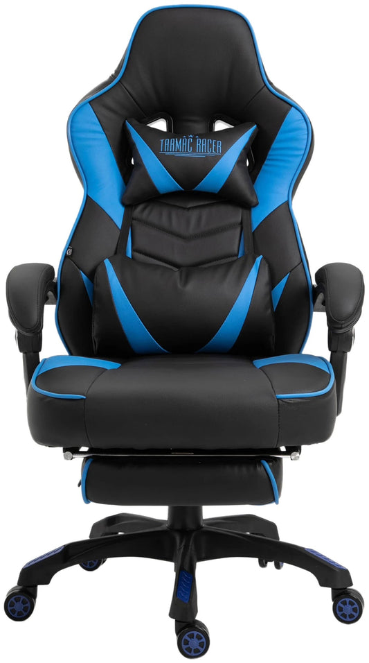In And OutdoorMatch Bürostuhl Catherin – Schwarz und Blau – Kunstleder – Hochwertige Polsterung – Bequem gepolstert – Luxuriöses Erscheinungsbild