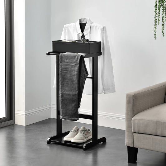 In And OutdoorMatch Kleiderständer Ressie – Mit Aufbewahrungsbox – 110 x 43,5 x 34,5 cm – Schwarz – MDF und Kiefer – Modernes Design
