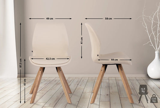 In And OutdoorMatch Stuhl Jeff – Creme – Esszimmerstuhl – Kunstleder und Buchenholz – Hochwertige Polsterung – Dekorativer Stuhl – Stilvoller Esszimmerstuhl – Moderner Look
