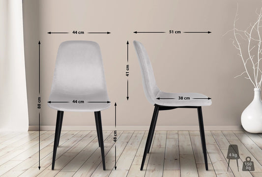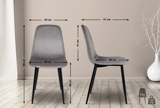 In And OutdoorMatch Esszimmerstühle Jean – Grau – 4er-Set – Samt – Hochwertige Polsterung – Stilvolle Esszimmerstühle – Luxuriöses Erscheinungsbild