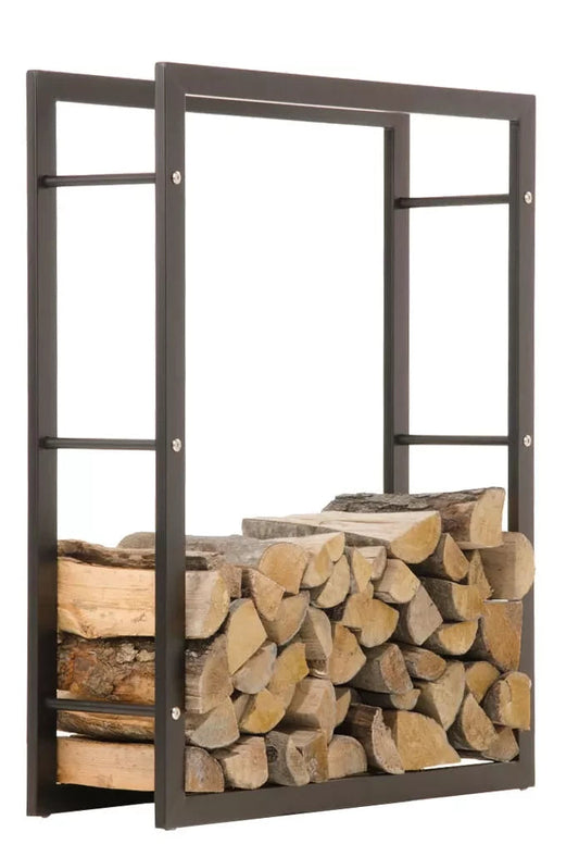 In And OutdoorMatch Stahl-Brennholzregal Marta – Mattschwarz – Für drinnen und draußen – 25 x 80 x 100 cm – Holzaufbewahrung aus Stahl