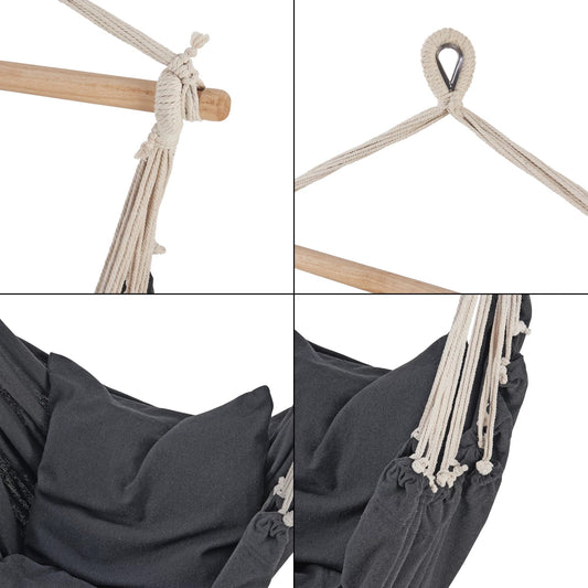 In And OutdoorMatch Cotton Hängesessel Braulio – Max. 120 kg – Dunkelgrau – Stoff und Holz – Stilvolles Aussehen