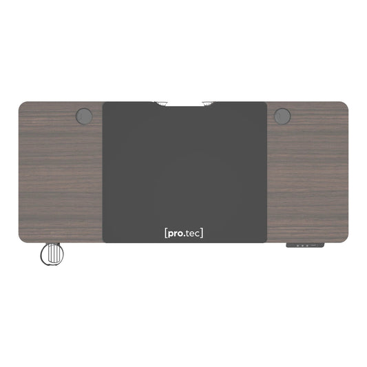 In And OutdoorMatch Schreibtisch Willard – Sitz-Steh-Schreibtisch – elektrisch höhenverstellbar – Walnuss und Schwarz – Spanplatte und Aluminium – modernes Design