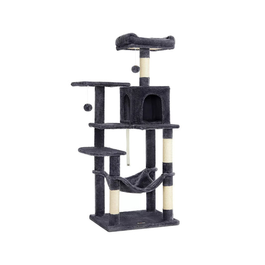In And OutdoorMatch Kratzbaum Ashly – 118 cm – Für Katzen – Dunkelgrau – Weiche Katzenbett-Hängematte – Pfosten – Katzenspielzeug – Auch für kleine Kätzchen geeignet
