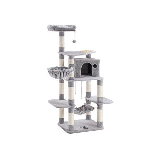 In And OutdoorMatch Luxuriöser Kratzbaum für Katzen Ilovo – Grau – Weiche Katzenbett-Hängematte – Katzenspielzeug – Geeignet für kleine Kätzchen – 141 x 50 x 141 cm