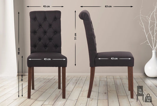 In And OutdoorMatch Esszimmerstuhl Jason – Dunkelgrau – Esszimmerstuhl – Stoff – Hochwertige Polsterung – Stuhl im Antikstil – Luxuriöser Esszimmerstuhl