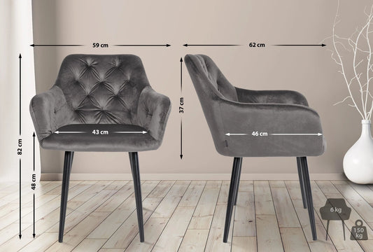 In And OutdoorMatch Esszimmerstühle Zoe – Grau – 2er-Set – Samt – Hochwertige Polsterung – Stilvolle Esszimmerstühle – Luxuriöses Erscheinungsbild