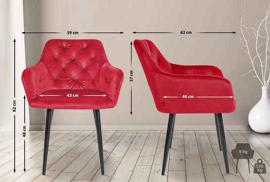 In And OutdoorMatch Esszimmerstühle Madison – Rot – 2er-Set – Samt – Hochwertige Polsterung – Stilvolle Esszimmerstühle – Luxuriöses Erscheinungsbild