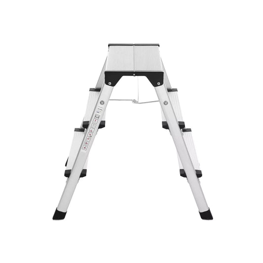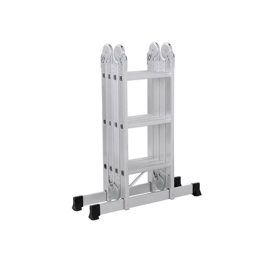 In And OutdoorMatch Ladder Lambert – 4 Stufen – Aluminium – 12 cm breite Stufen – 44 x 83,5 x 143 cm – rutschfest – Trittleiter