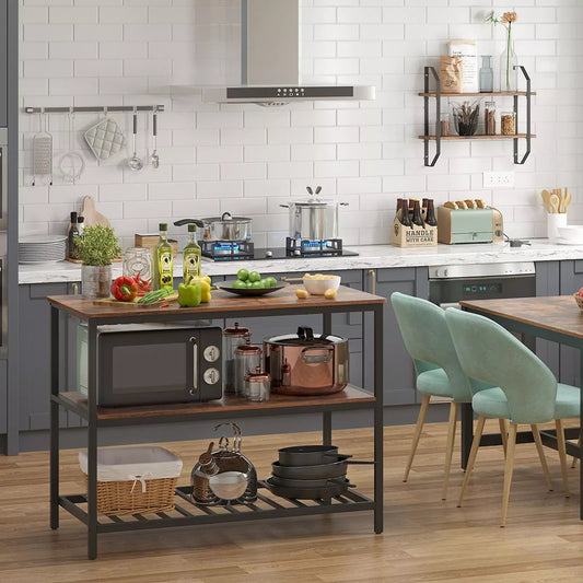 In And OutdoorMatch Stehendes Küchenregal Neil – 3 Ebenen – Bäckerregal – Mikrowellenregal – Metall und Holz – 120 x 60 x 90 cm