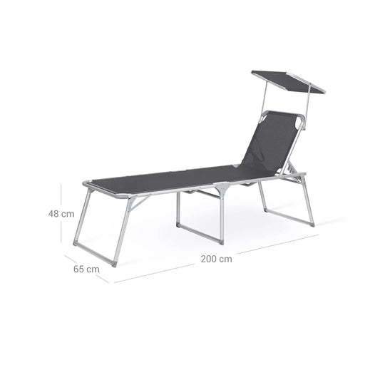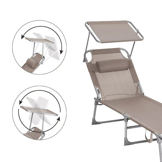 In And OutdoorMatch Lounger Zack – Liege – Gartenliege – Mit Kopfstütze – Sonnendach – Verstellbare Rückenlehne – Leicht – Zusammenklappbar – 53 x 193 x 29,5 cm – Belastbar bis 150 kg – Garten – Balkon – Beige