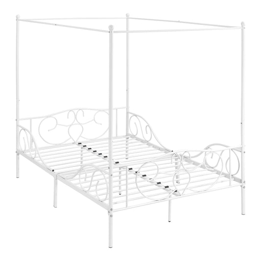 In And OutdoorMatch Metall-Himmelbett Alfonso – Mit Lattenrost – 140 x 200 cm – Weiß – Stabiler Rahmen – Minimalistisches Design