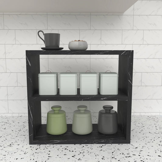 In And OutdoorMatch Küchenschrank Remi – Aufbewahrungsschrank – 150 x 60 x 42 cm – Schwarz und Marmoroptik – Stilvoll und praktisch – Metall – Spanplatte