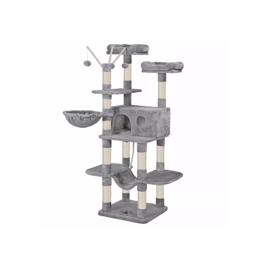 In And OutdoorMatch Luxus-Kratzbaum Clyde – Für Katzen – 172 cm – Grau – Weiche Katzenbett-Hängematte – Katzenspielzeug – Geeignet für kleine Kätzchen – Muttertagsgeschenk