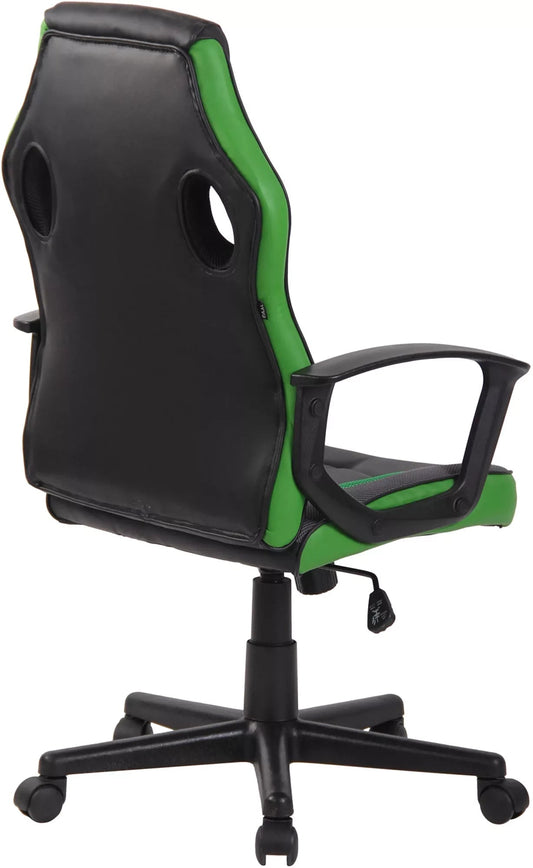 In And OutdoorMatch Luxus-Bürostuhl Aurelio – Schwarz/Grünes Kunstleder – Mit Rückenlehne und Armlehne – Höhenverstellbar – Ergonomisch