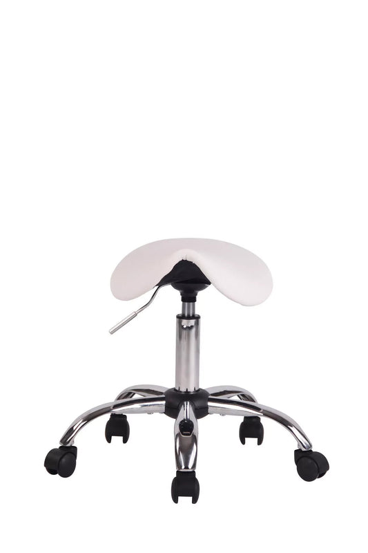 In And OutdoorMatch Luxus-Arbeitshocker Marcos – Weiß – Auf Rollen – Bürostuhl – Höhenverstellbar 46 – 58 cm – Kunstleder