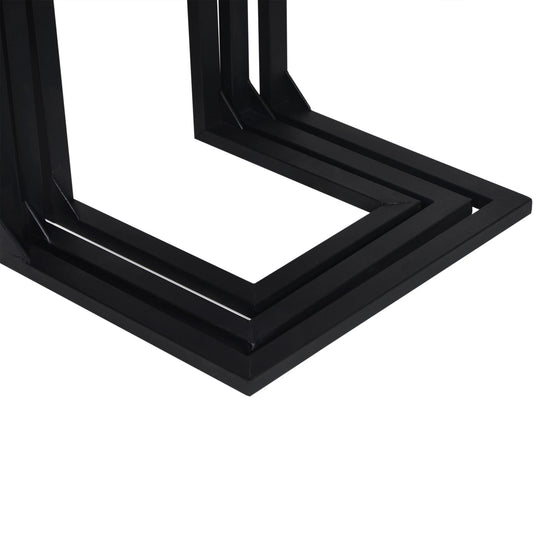 In And OutdoorMatch Beistelltisch Tito – 3er-Set – Schwarz und Holzfarben – Kiefer und Metall – Modernes Design