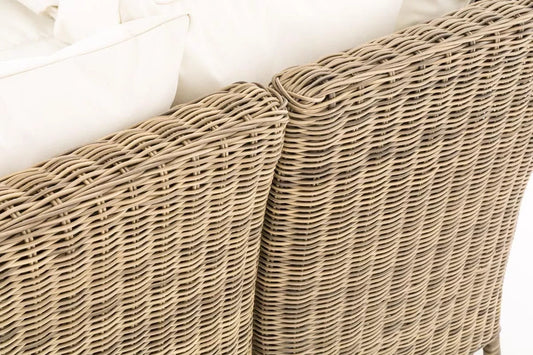 In And OutdoorMatch Lounge-Sofa Gianni – Korbgeflecht – Gartenmöbel – Für draußen, Garten und Balkon – Lounge-Sofa-Set – Creme/Weiß