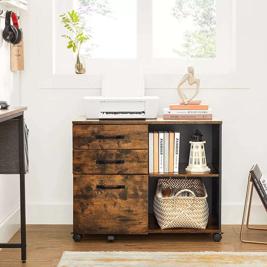 In And OutdoorMatch Aktenschrank Ransom – Mobiler Container – Mobil – Mit Rollen – 3 Schubladen – Industriestil – Vintage Braun/Schwarz