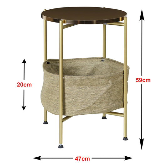 In And OutdoorMatch Beistelltisch Demetrius – 59 x 47 cm – goldfarben und sandfarben – Metall, Spanplatte und Stoff – praktischer Stauraum – stilvolles Design