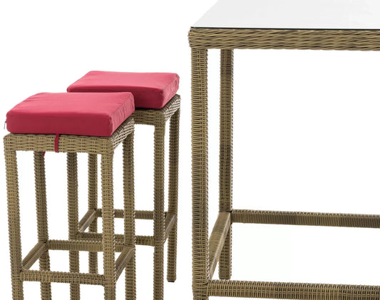 In And OutdoorMatch Bartisch mit Stühlen Orie – Rot/Creme – Gartenbar Rattan – 4er-Set Orie – Innen und Außen – Wetterfest – Gartenmöbel – 4 Personen