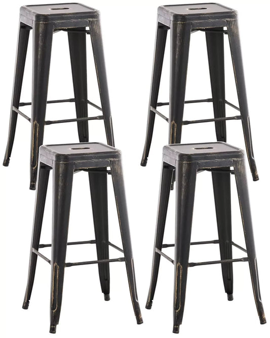 In And OutdoorMatch Rustikaler Barhocker Ubaldo – Messing – Industriedesign – Fußstütze – für Küche und Bar – Sitz aus Metall
