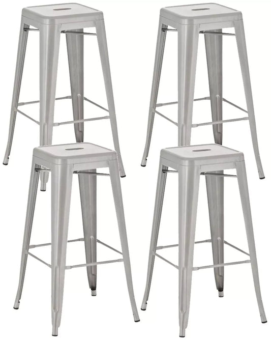 In And OutdoorMatch Rustikaler Barhocker Markus – Silber/Grau – Industriedesign – Rückenlehne – Für Küche und Bar – Metallsitz