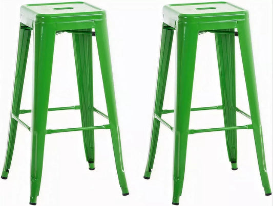 In And OutdoorMatch Rustikaler Barhocker Jewell – Grün – Industriedesign – 2er-Set – Fußstütze – Für Küche und Bar – Metallsitz