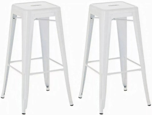 In And OutdoorMatch Rustikaler Barhocker Ocie – Weiß – Industriedesign – 2er-Set – Fußstütze – Für Küche und Bar – Metallsitz