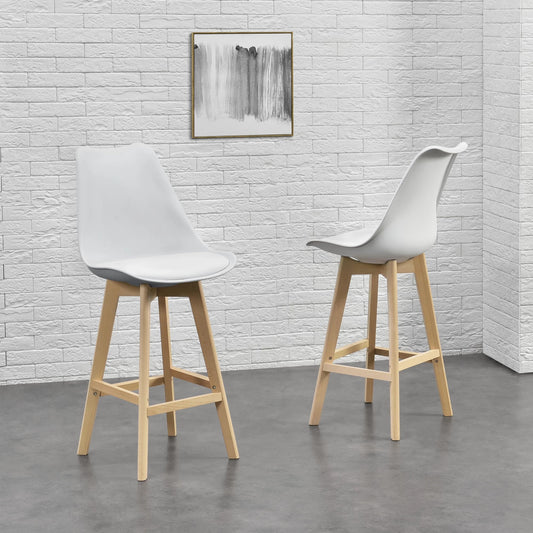 In And OutdoorMatch Barhocker Erik – 4er-Set – Kunstleder und Buche – 105 x 48 x 58 cm – Weiß – Modernes Design