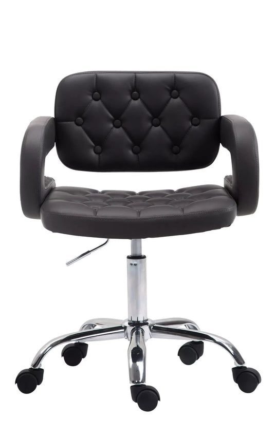 In And OutdoorMatch Luxus-Arbeitshocker Ayana – Schwarz/Chrom – Auf Rollen – Bürostuhl – Mit Rückenlehne – Höhenverstellbar 45 – 57 cm – Kunstleder