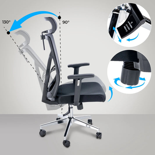 In And OutdoorMatch Bürostuhl Emerens – Ergonomischer Bürostuhl – Verstellbare Elemente – Netzpolsterung – Polyester