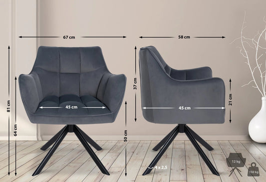 In And OutdoorMatch Esszimmerstuhl Edmund – Grau – Samt – Hochwertige Polsterung – Moderner Esszimmerstuhl – Deluxe-Look
